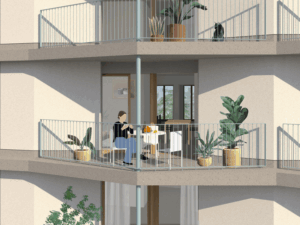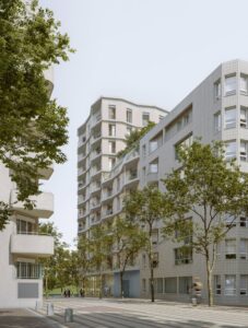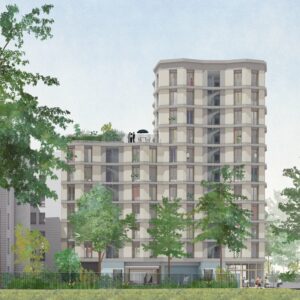 Erigé sur 10 étages, le lot A est un immeuble exclusivement dédié au BRS situé rue Tchaïkovski, près de la future entrée Est du parc Chapelle Charbon. La haute qualité environnementale et architecturale de l’immeuble, construit avec des matériaux innovants biosourcés, assure un confort thermique et d’habitation optimal aux logements. Ces derniers seront tous traversants ou bénéficieront d’une triple ou double orientation sur le parc. Ils disposeront d’un balcon en triangle offrant une vue sur le parc et seront conçus pour orienter les séjours à l’Ouest. Un jardin planté au pied de l’immeuble est pensé comme un espace de fraîcheur dans la continuité du parc. La toiture végétalisée au 6e étage offrira des espaces collectifs et une terrasse à aménager exclusivement dédiée aux habitants. Les espaces communs au rez-de-chaussée pourront aisément accueillir vélos et poussettes ainsi que des commerces de proximité afin de créer une continuité avec le reste du quartier.
